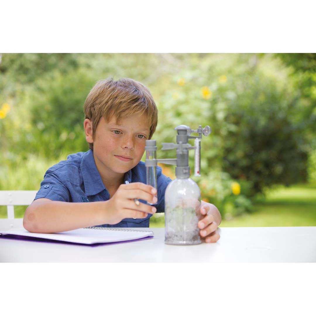 Beobachte das Wetter mit deiner eigenen Wetterstation! Dieses preisgekrönte Wissenschaftsset vereint Wetterbeobachtung und Klimaforschung in einem spannenden Lernprojekt mit zahlreichen Funktionen: Windrad, Windfahne, Thermometer und Regenmesser helfen, Veränderungen des Wetters zu messen und zu verstehen. Außerdem kann der Treibhauseffekt erforscht und ein eigenes Mini-Terrarium in einer Flasche angelegt werden – so lernst du spielerisch, wie Klima und Pflanzenwachstum zusammenhängen.