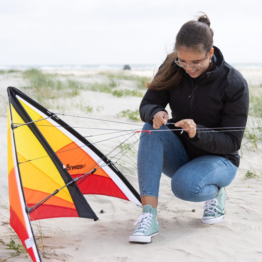 Der Breezo ist die nächste Generation im Segment der Lenkdrachen und ein würdiger Nachfolger des legendären Yukon. Speziell für Ein- und Aufsteiger konzipiert, bietet er eine Kombination aus Geschwindigkeit, Präzision und Trickpotenzial, die ihn zu einem idealen Trainingsdrachen für Piloten ab 12 Jahren macht. Dank seiner robusten Konstruktion aus Fiberglas- und Hybridstäben hält der Breezo unsanften Landungen stand. Ein Segel aus reißfestem Ripstop-Polyester sorgt für Langlebigkeit. Der Breezo bietet außergewöhnliche Flugstabilität in verschiedenen Windverhältnissen und erleichtert das Erlernen von Basistricks durch präzises Flugverhalten und exzellentes Feedback an Dyneemaleinen. Sein kompaktes Packmaß macht ihn besonders transportfreundlich und zur perfekten Wahl für Piloten, die einen zuverlässigen und vielseitigen Lenkdrachen suchen.