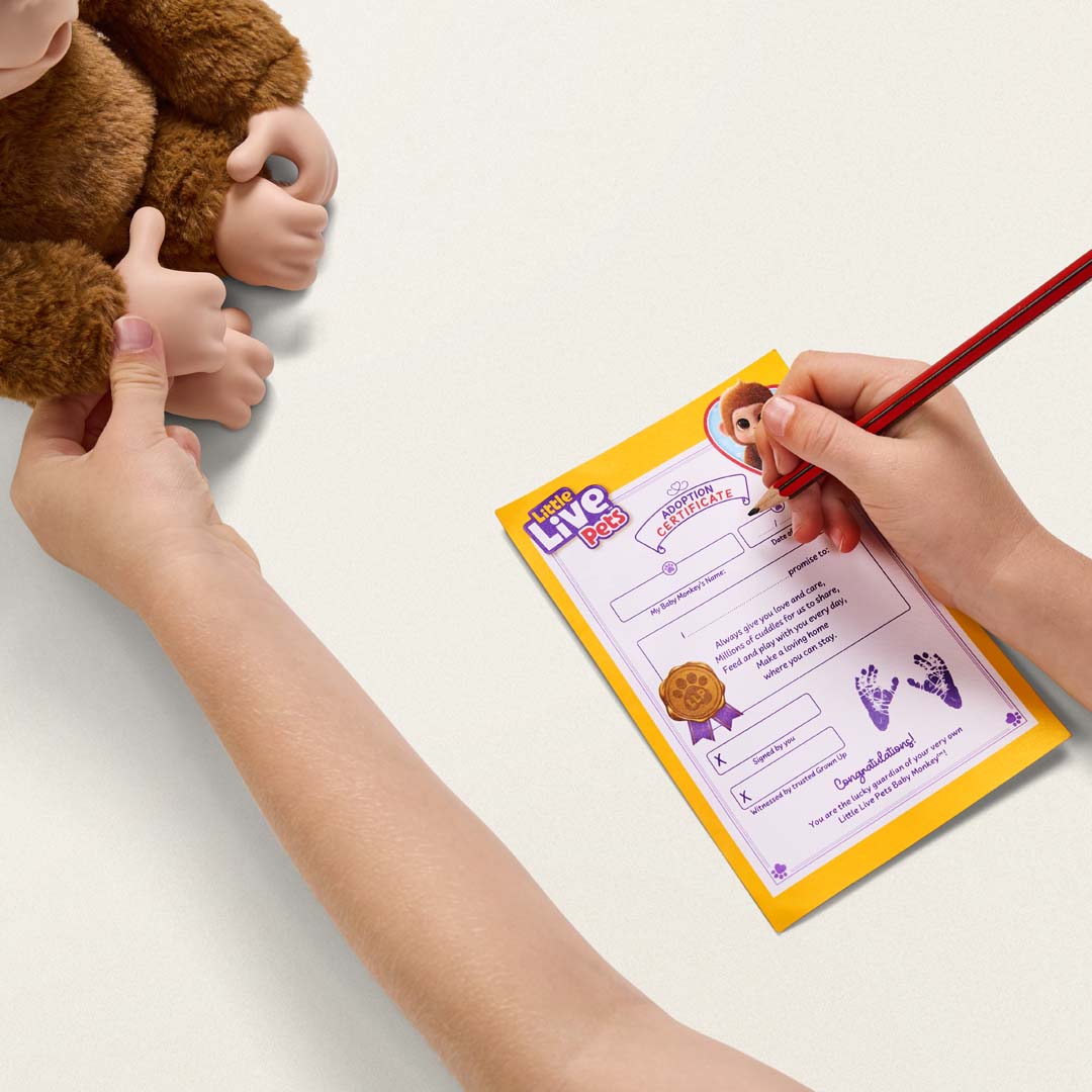 • Inhalt: 1 x interaktives Babyäffchen (Plüsch), 1 x Babyfläschchen, 1 x Bedienungsanleitung, 1 x Adoptionszertifikat, 3 x AA-Batterien