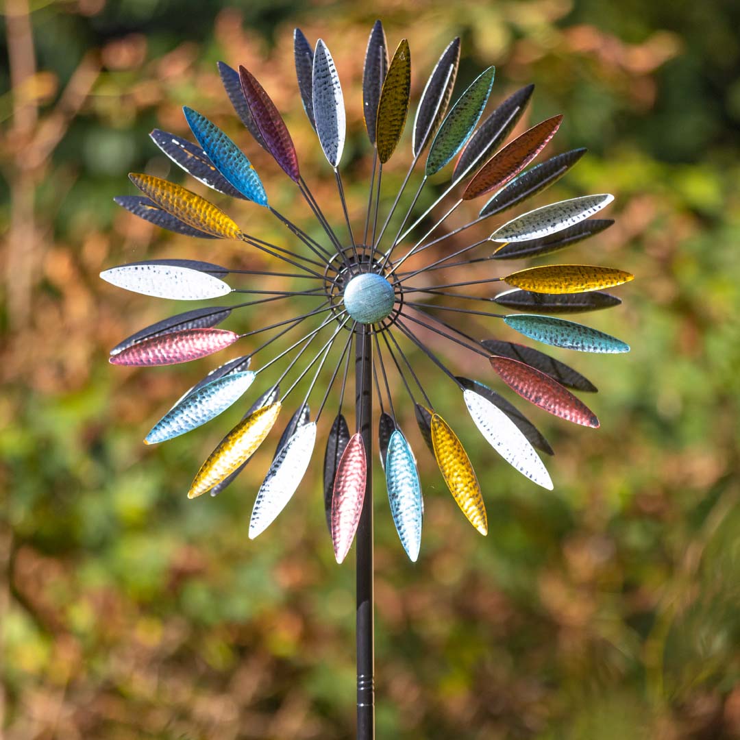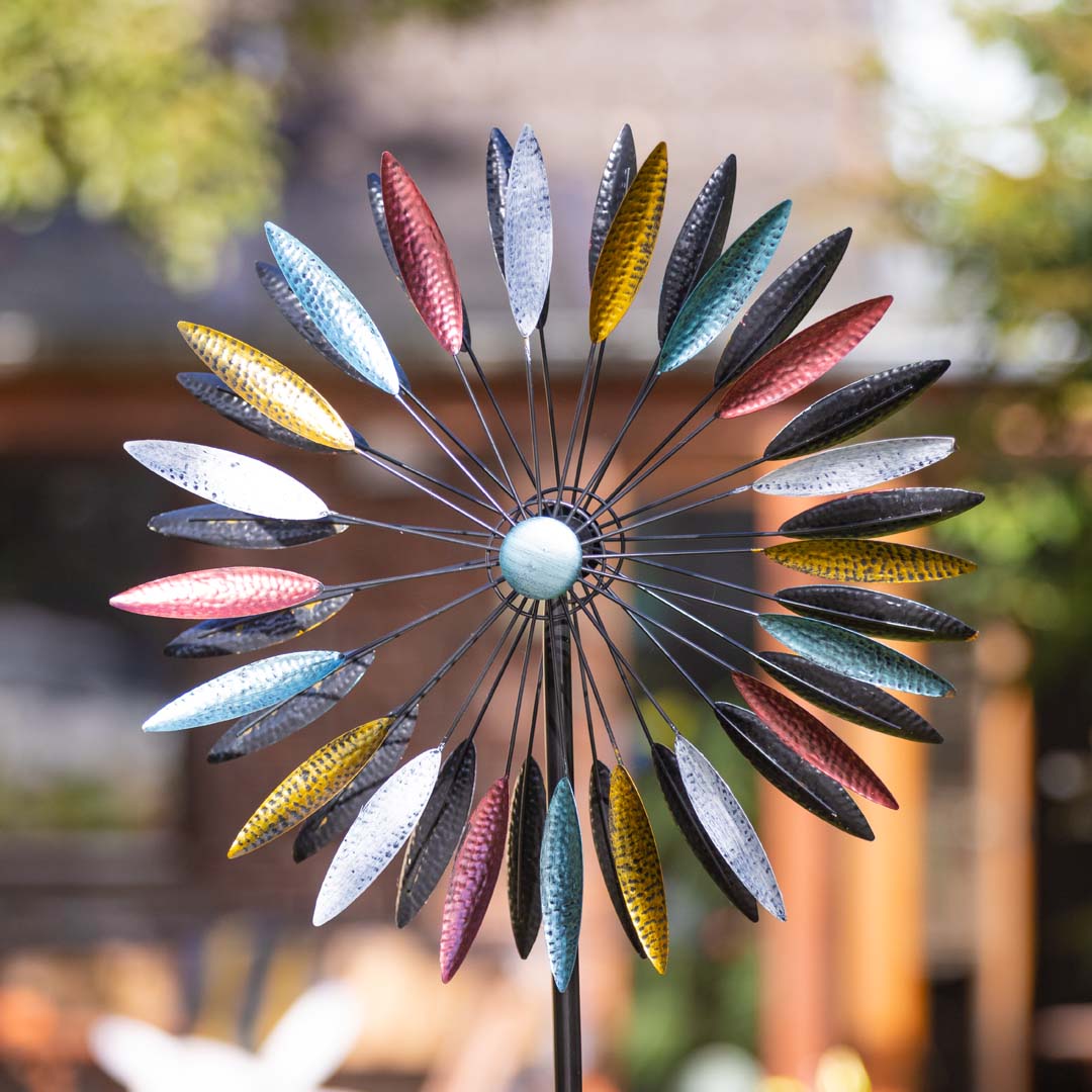 Genieße die kinetische Bewegung unserer Kinetic Art Metallwindräder, die moderne Funktionalität mit anmutiger Eleganz kombinieren. Mit ihrer soliden Metallkonstruktion, wartungsfrei-abgedichteten Lagern und doppelten Rotoren sind diese Windspiele so gebaut, dass sie garantiert allen Wetterbedingungen standhalten. Solide Erdspieße an der Basis sorgen für eine feste Verankerung an windigen Tagen. Einfach zu montieren, sind diese faszinierenden Metall-Windspiele eine wunderbare Bereicherung für jeden Garten.