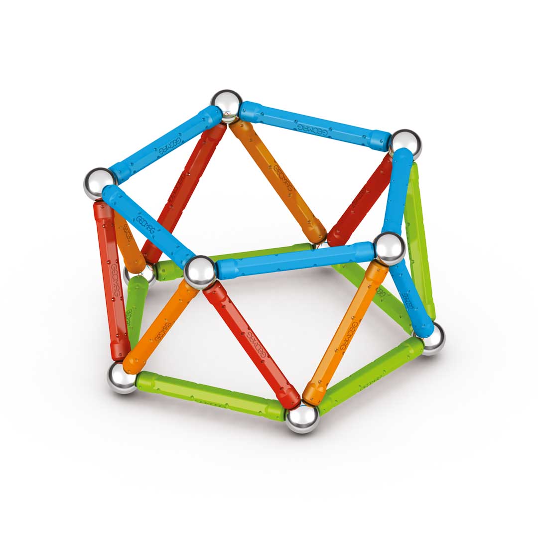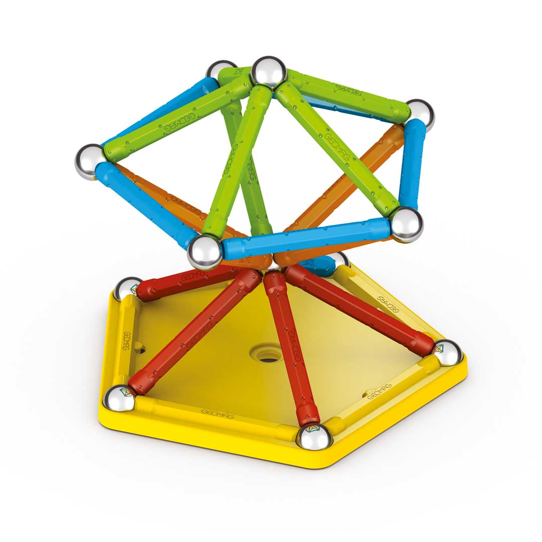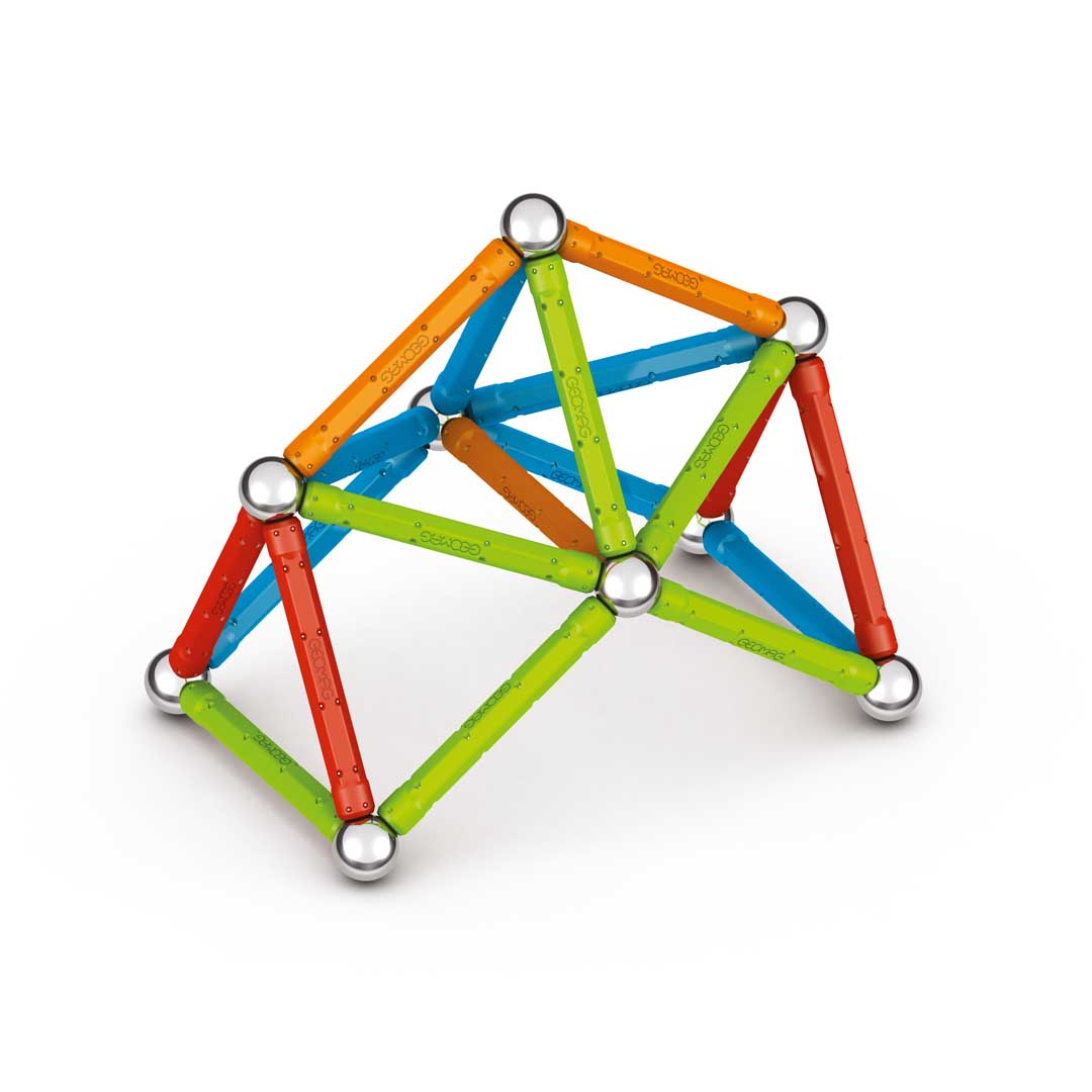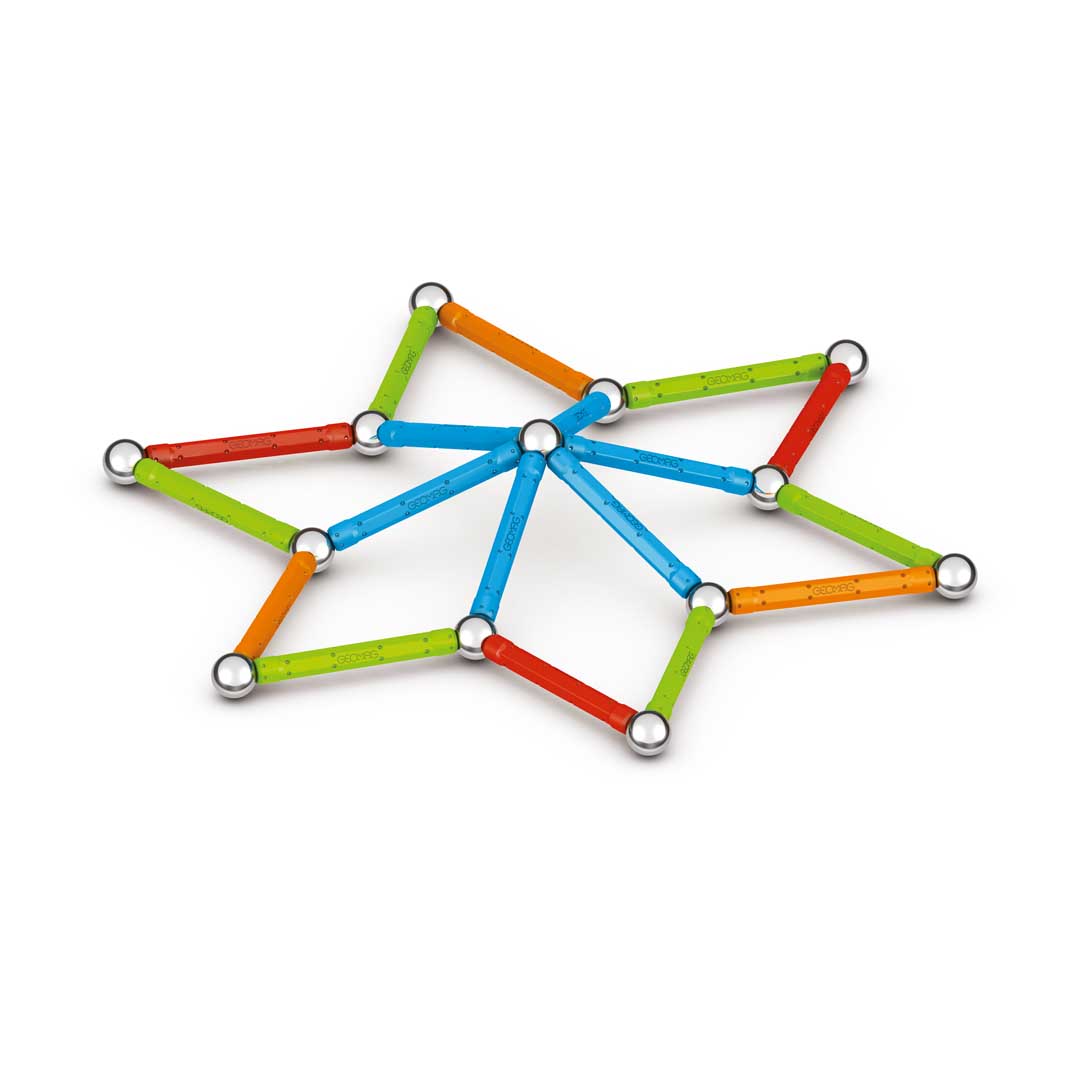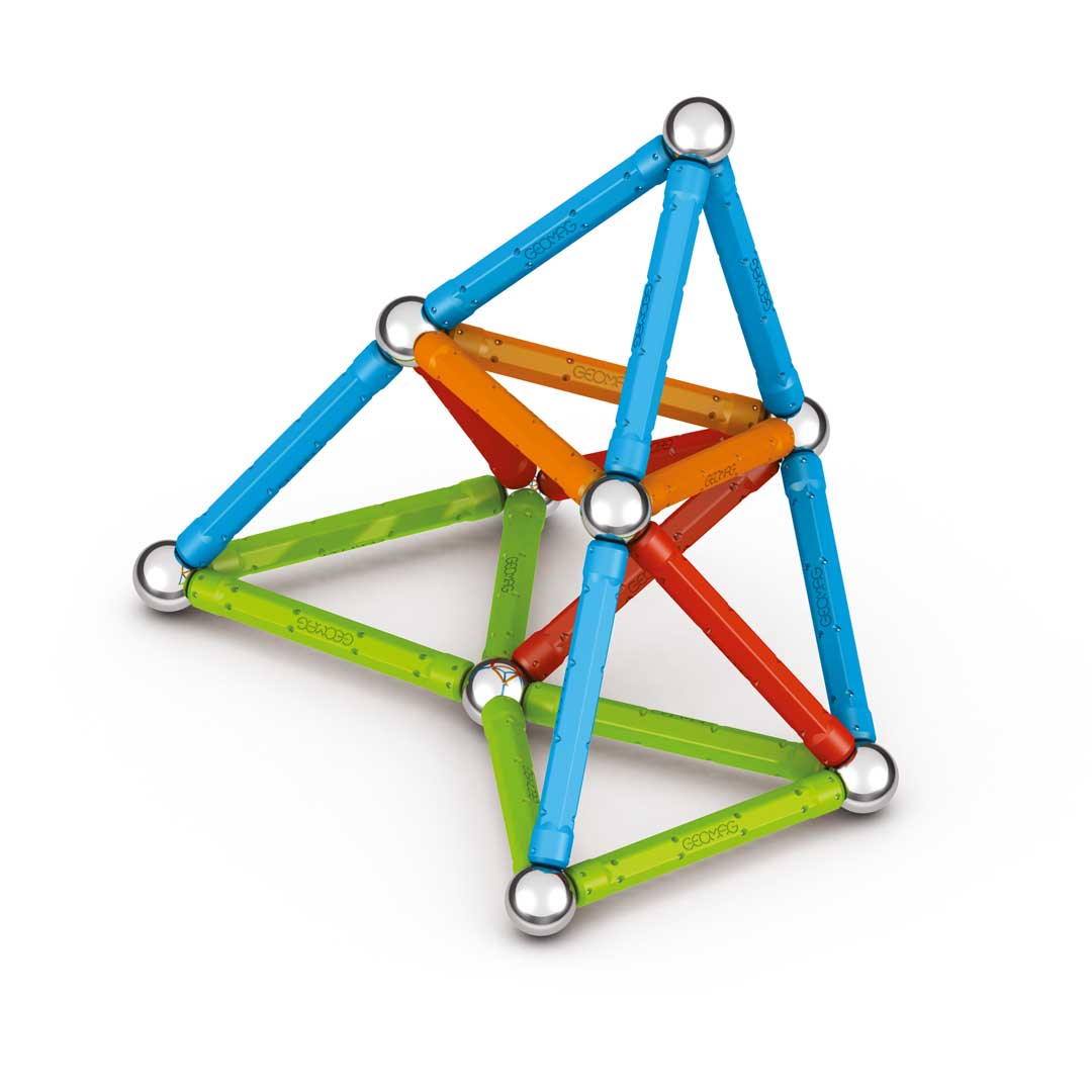 • Bauteile: Magnetischen Stäbe, Stahlkugeln und Tafeln in verschiedenen Formen bilden das magnetische Bausystem, dass Geomag in der ganzen Welt berühmt gemacht hat.