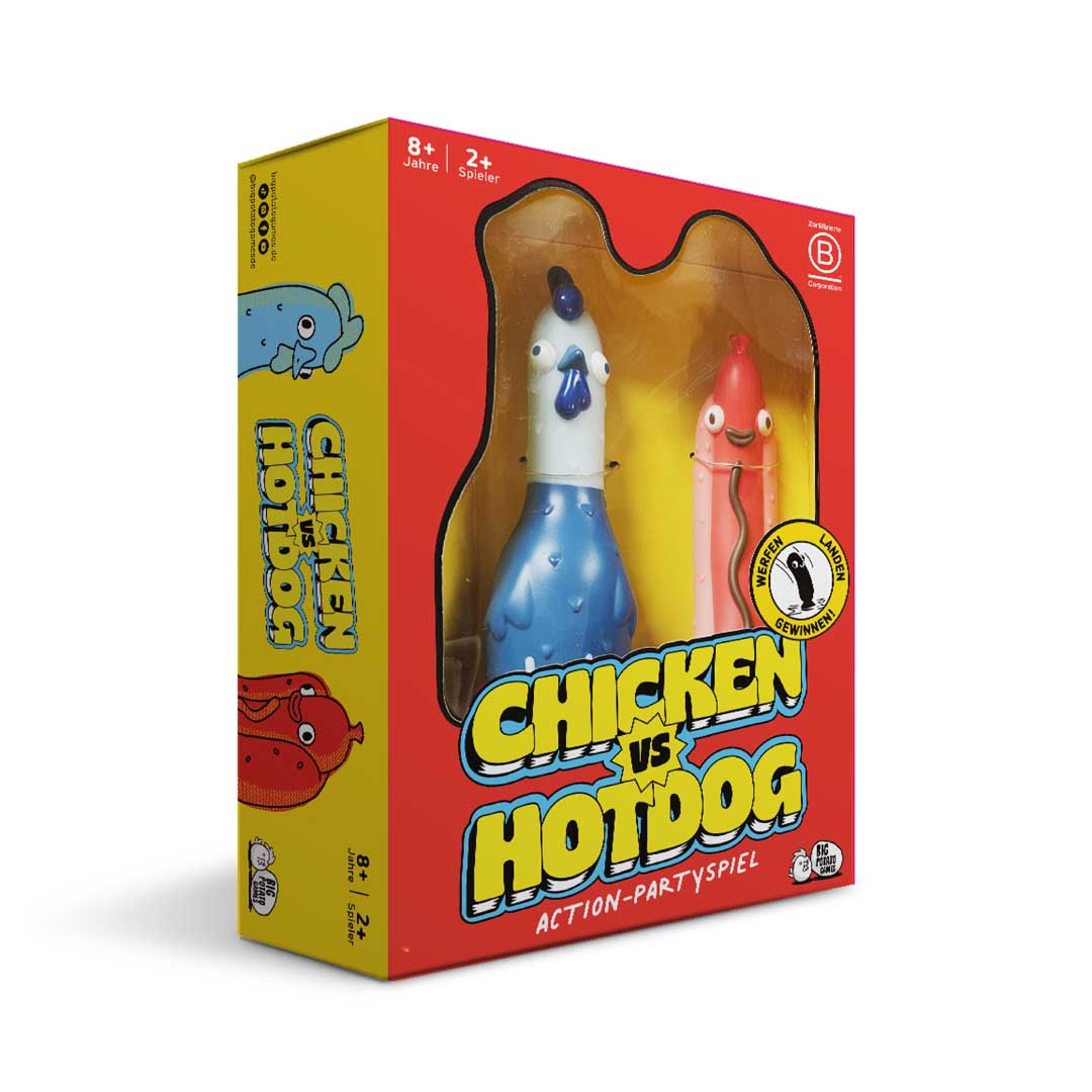 Ein schnelles Reaktionsspiel, bei dem Hühner und Hot Dogs in die Luft geworfen werden: