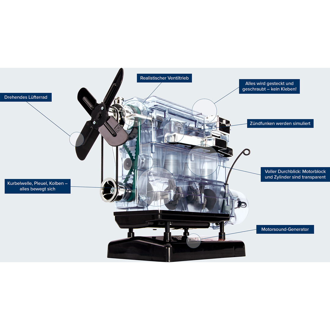 Franzis: 4-Zylinder-Motor, 100-Teile-Bausatz, Original Motor-Sound, ab 14+