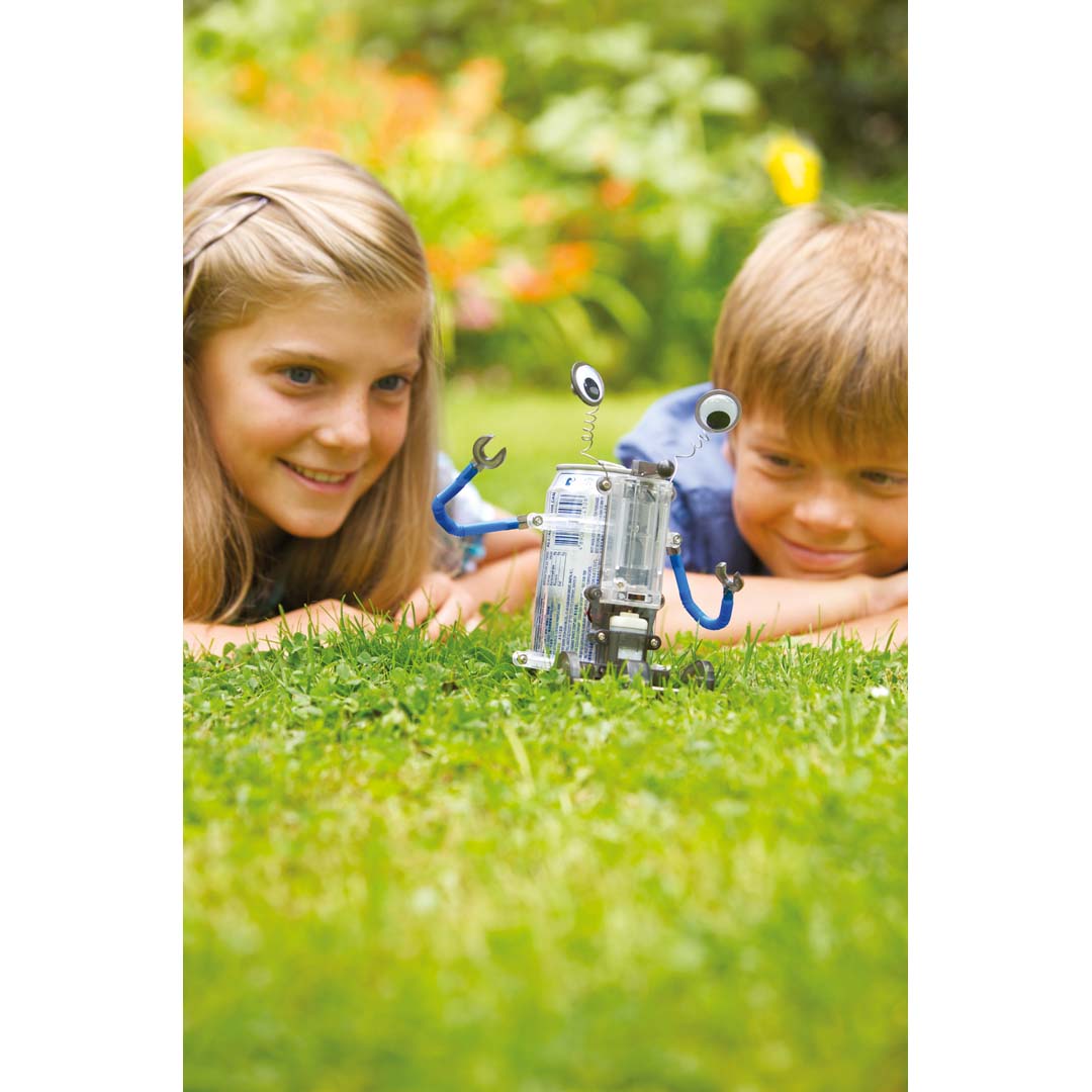 Verwandle eine Getränkedose in einen lustigen Roboter mit großen Glubschaugen! Dieser witzige Roboter läuft und vermittelt spielerisch die Themen Recycling und Mechanik. Kleine Tüftler bauen aus einer gebrauchten Dose ein cooles technisches Spielzeug – aus alt mach neu! Ein Projekt, das Nachhaltigkeit, Kreativität und technisches Verständnis vereint. Einmal fertiggestellt, erwacht der wackelnde Roboter zum Leben und sorgt für Spaß und Erstaunen. Zusätzlich erforderlich: 1 Getränkedose.
