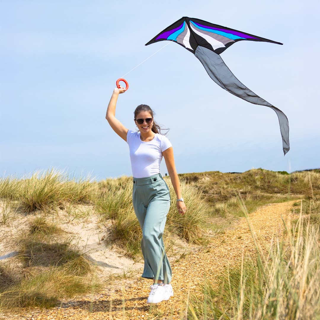 Dieser beeindruckende Delta-Drachen, exklusiv von Robert Brasington für Invento designt, vereint höchste Handwerkskunst mit einem unverwechselbaren Design. Mit einer Spannweite von 200 cm und einem
