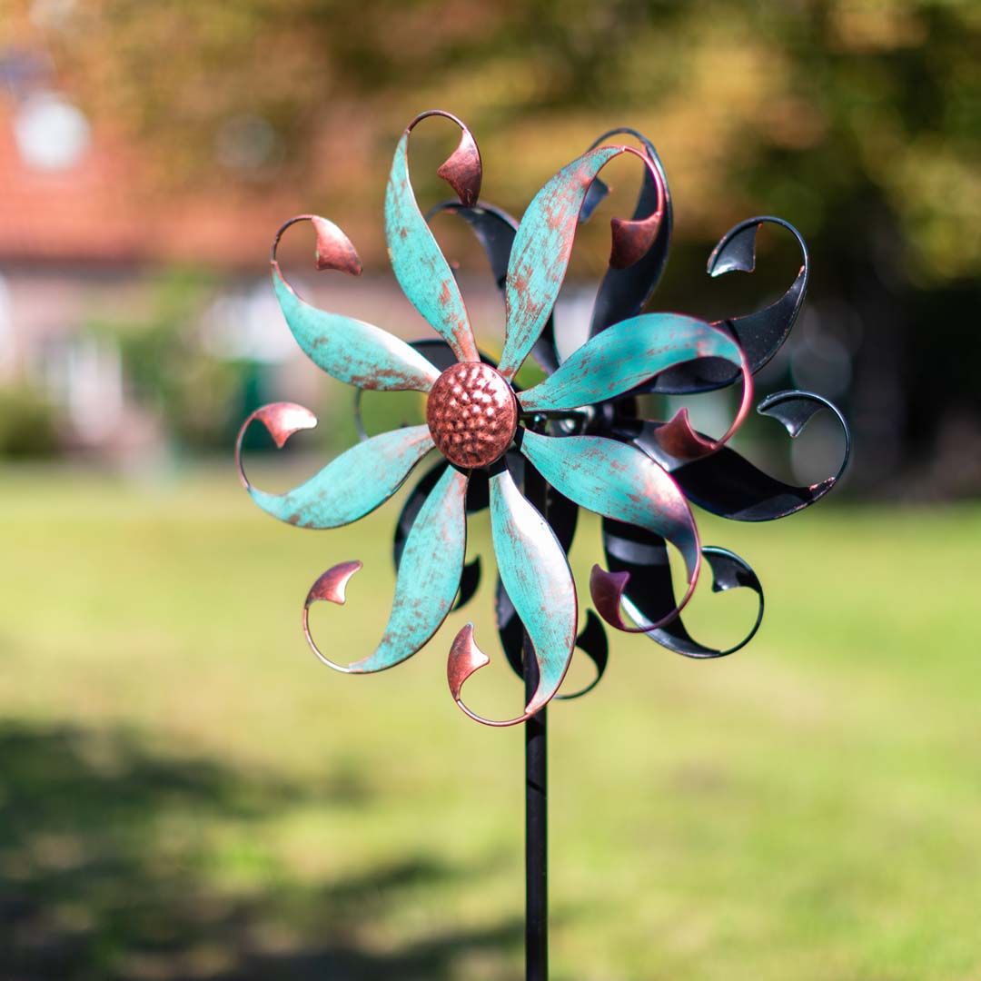 Genieße die kinetische Bewegung unserer Kinetic Art Metallwindräder, die moderne Funktionalität mit anmutiger Eleganz kombinieren. Mit ihrer soliden Metallkonstruktion, wartungsfrei-abgedichteten Lagern und doppelten Rotoren sind diese Windspiele so gebaut, dass sie garantiert allen Wetterbedingungen standhalten. Solide Erdspieße an der Basis sorgen für eine feste Verankerung an windigen Tagen. Einfach zu montieren, sind diese faszinierenden Metall-Windspiele eine wunderbare Bereicherung für jeden Garten.