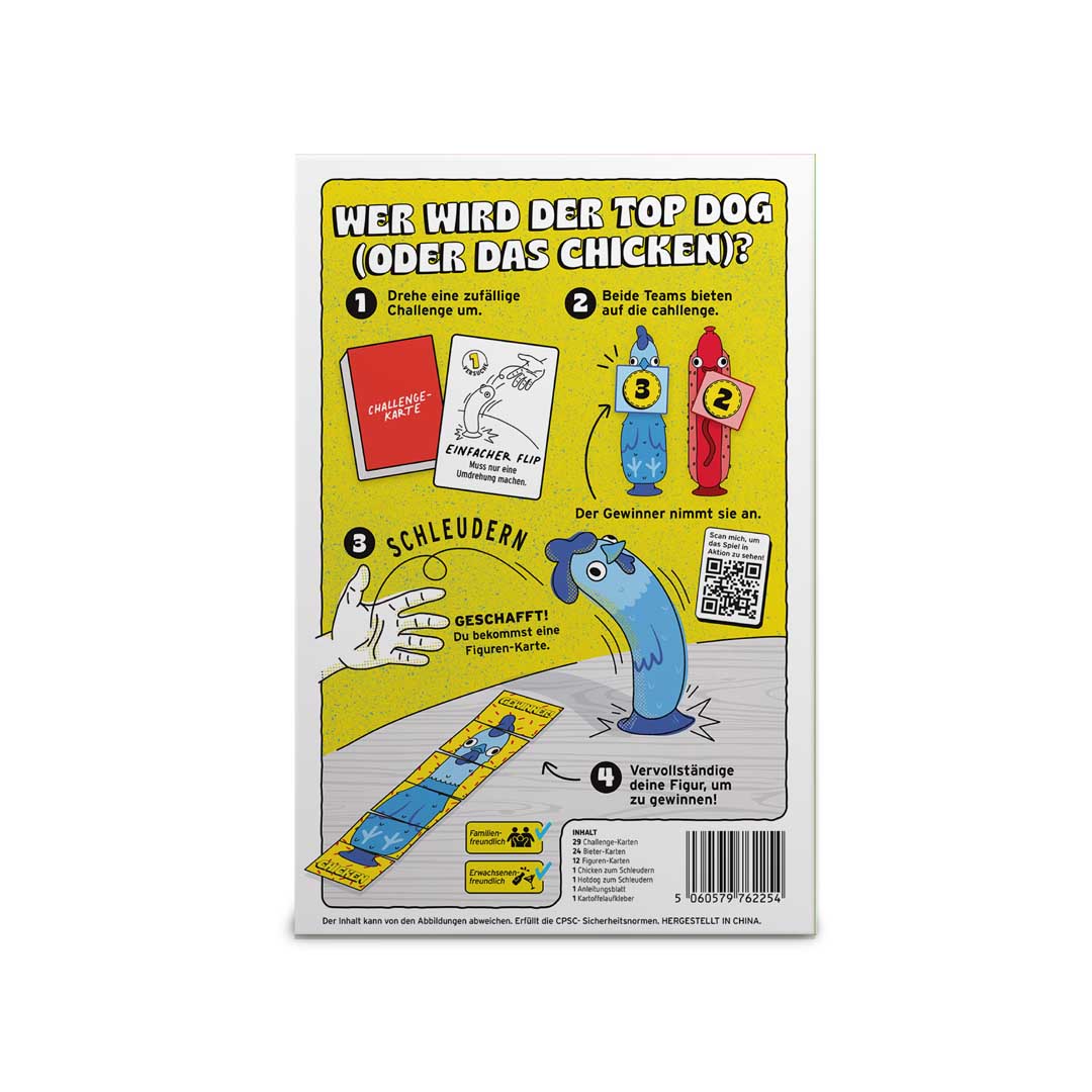 Ein schnelles Reaktionsspiel, bei dem Hühner und Hot Dogs in die Luft geworfen werden: