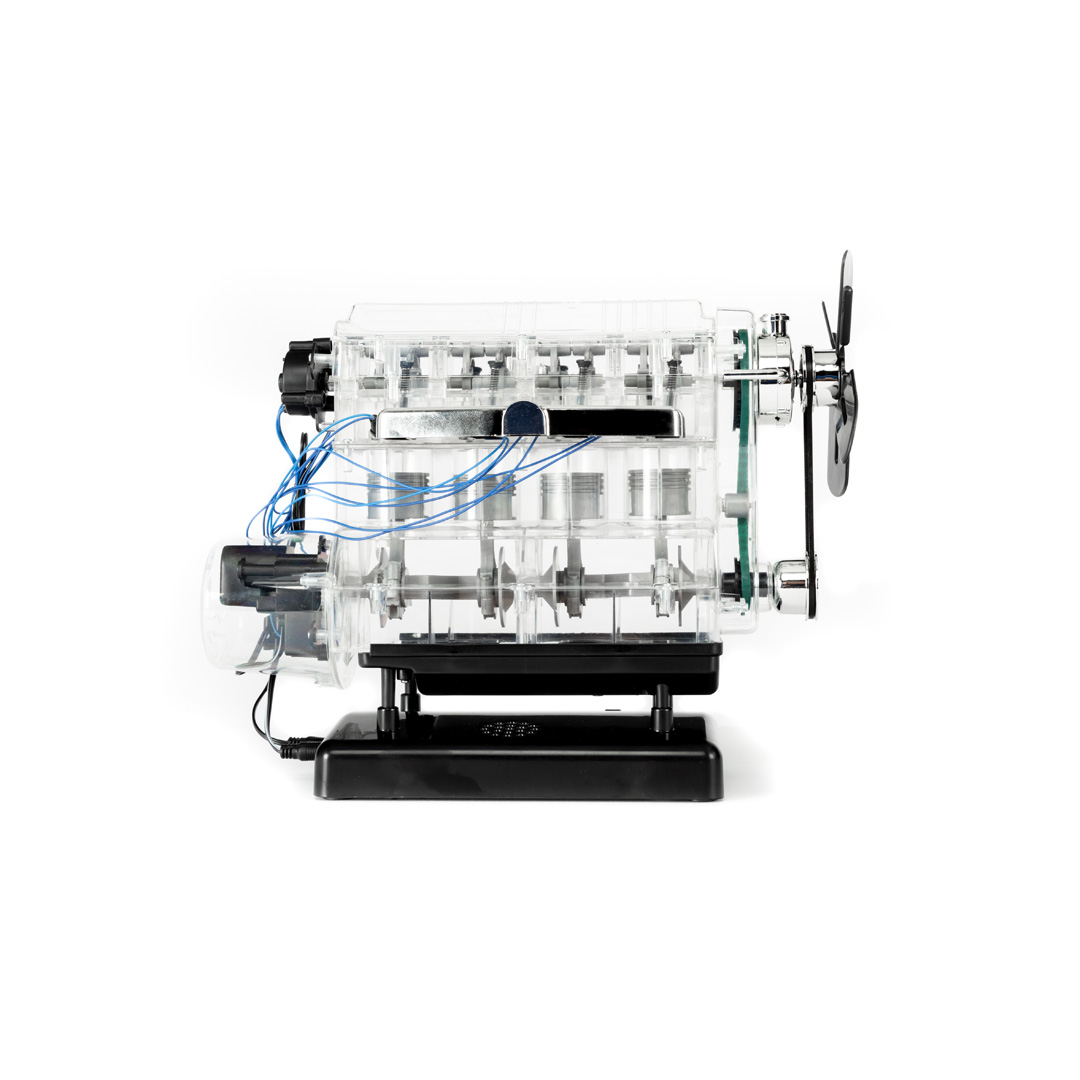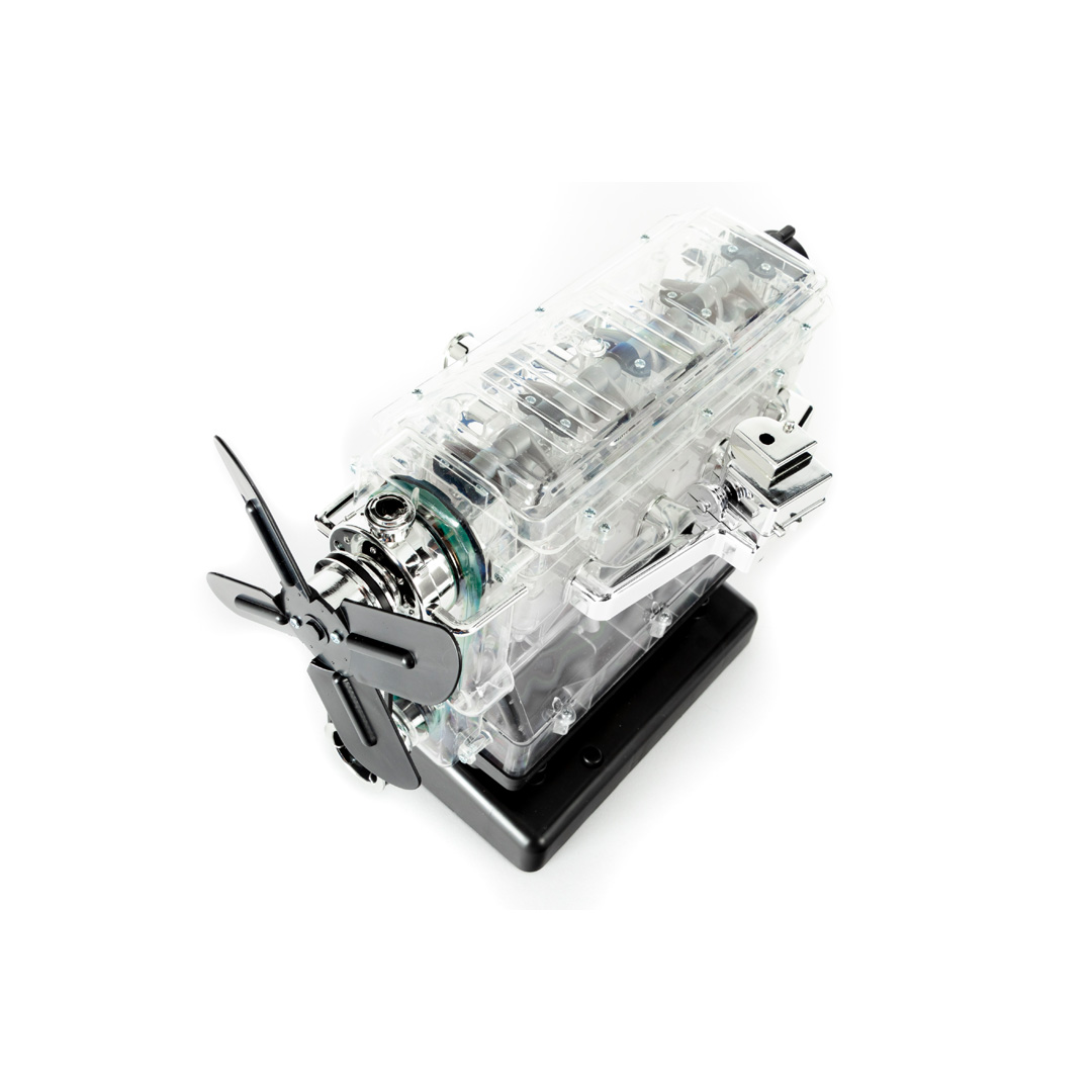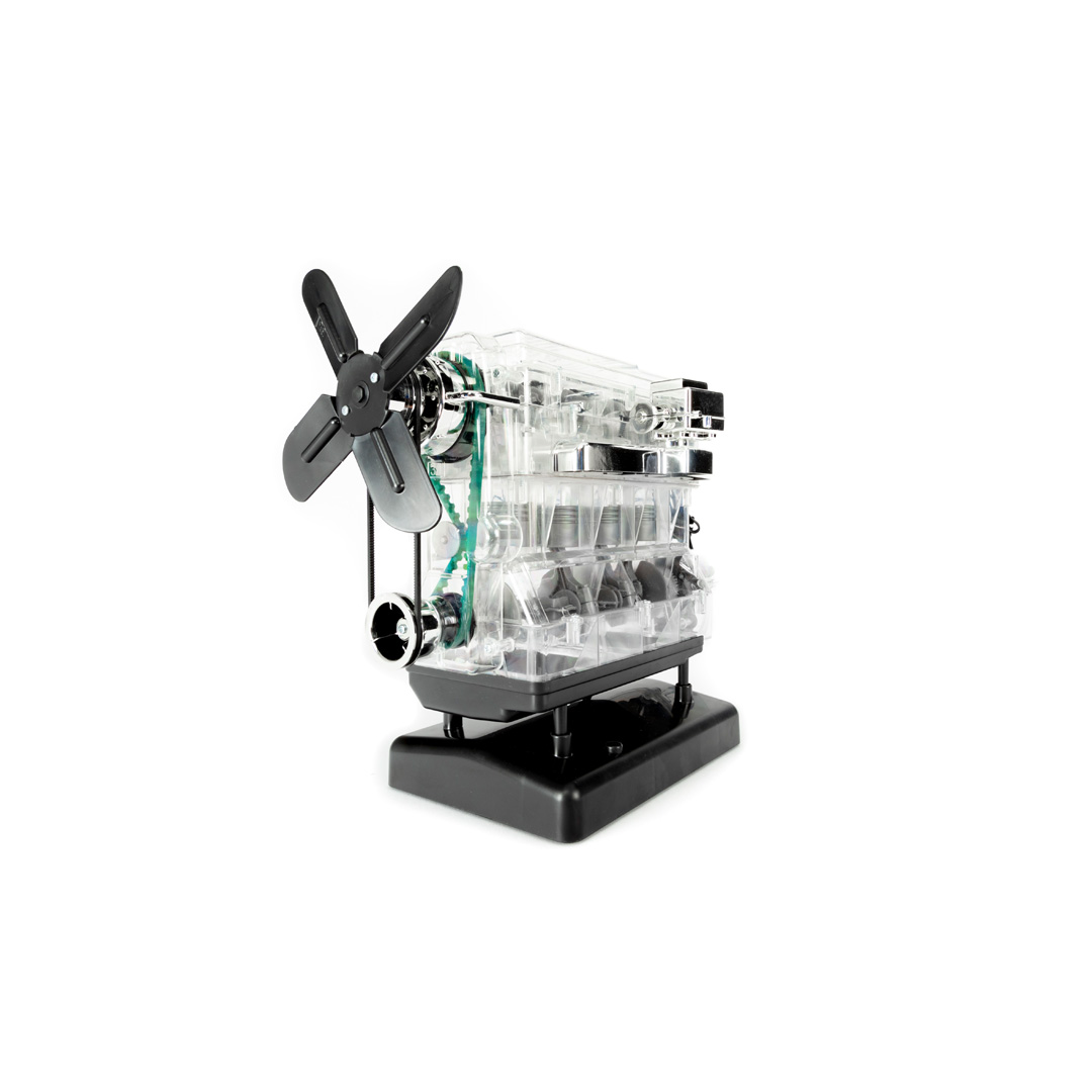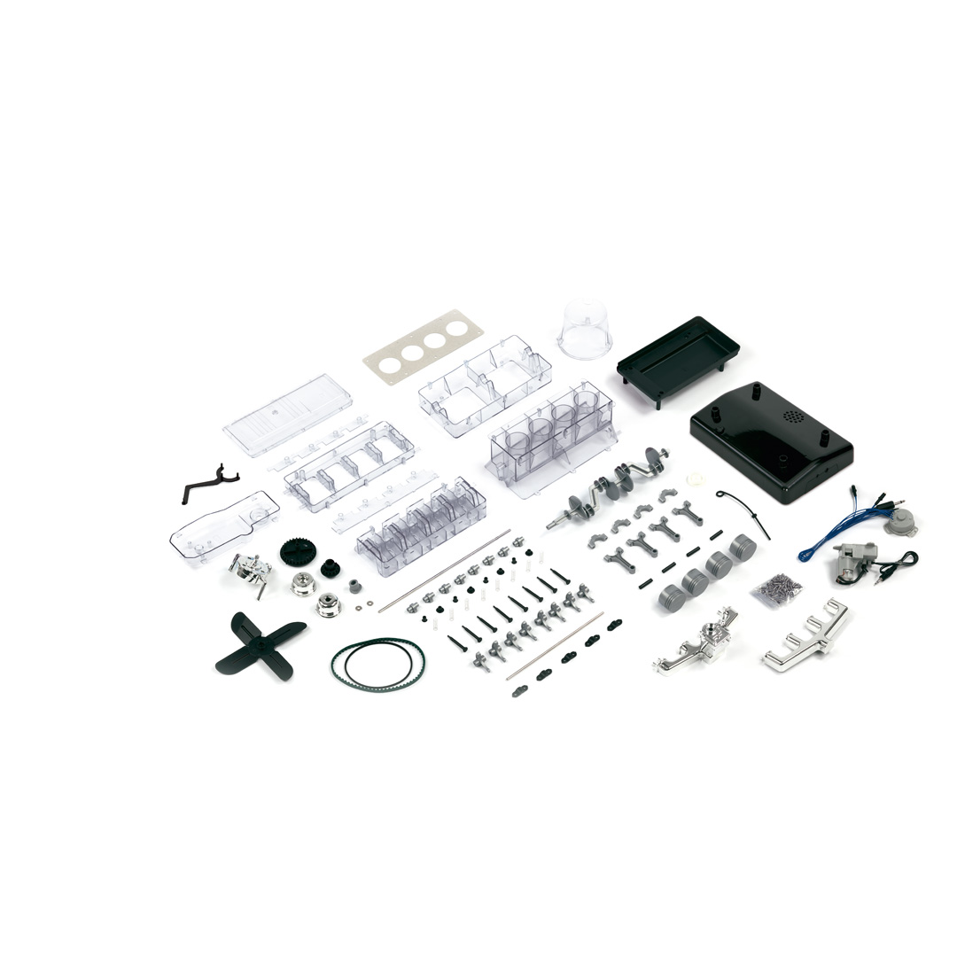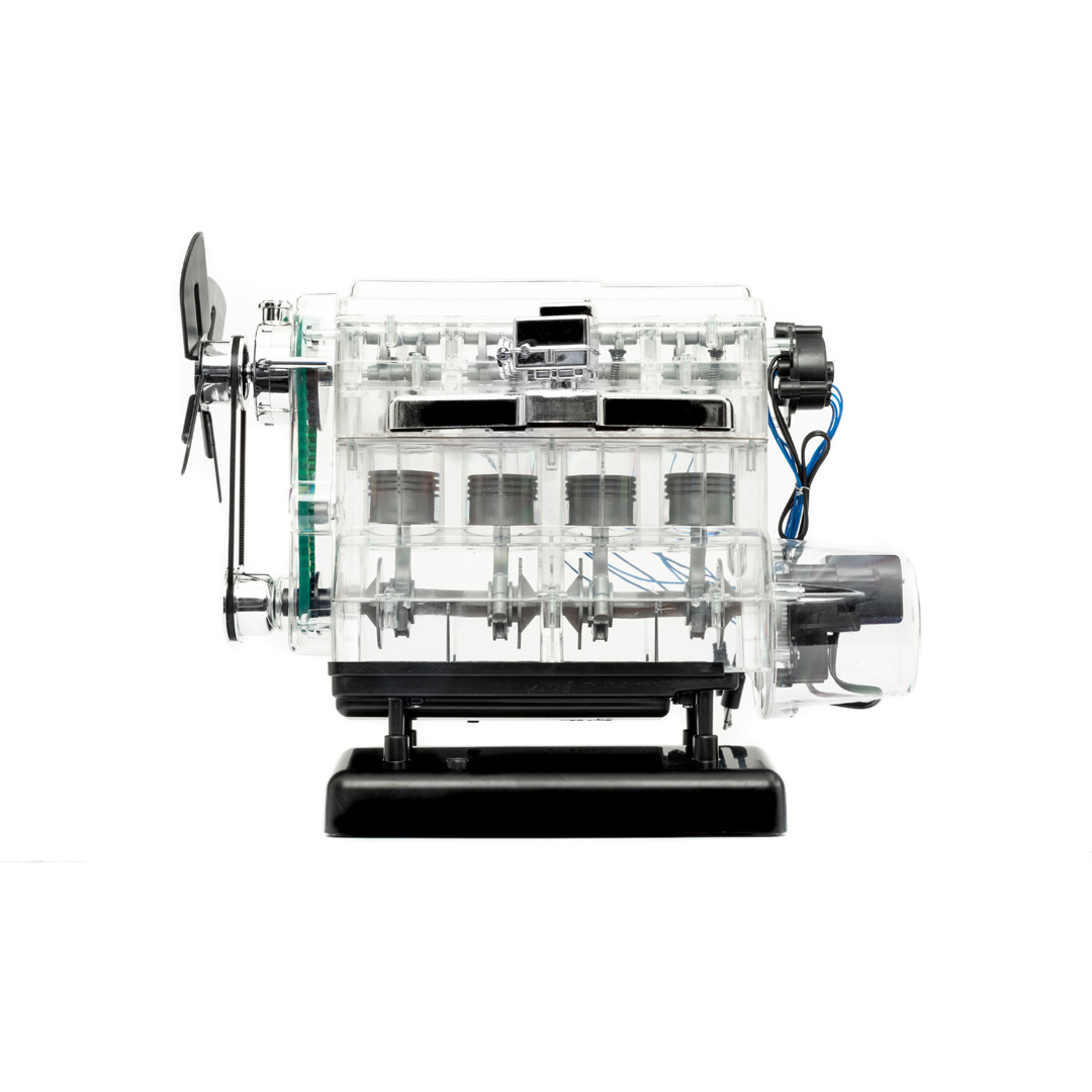 Erkunde, was unter der Motorhaube deines Autos steckt! Baue mit diesem Paket in ca. 3 Stunden aus 100 Teilen ein transparentes, voll funktionsfähiges Modell eines 4-Zylinder-Motors (Maßstab 1:3). Technikspaß für Dich und Deine Familie. Ein reich bebildertes Handbuch lässt keine Fragen zu Verbrennungsmotoren und ihren Einsatzmöglichkeiten offen. Alle Teile bewegen sich wie beim großen Vorbild: Kolben, Kurbelwelle, Nockenwelle, Ventile, Zündverteiler. Sogar der Zündfunke wird simuliert. Mit Soundmodul.